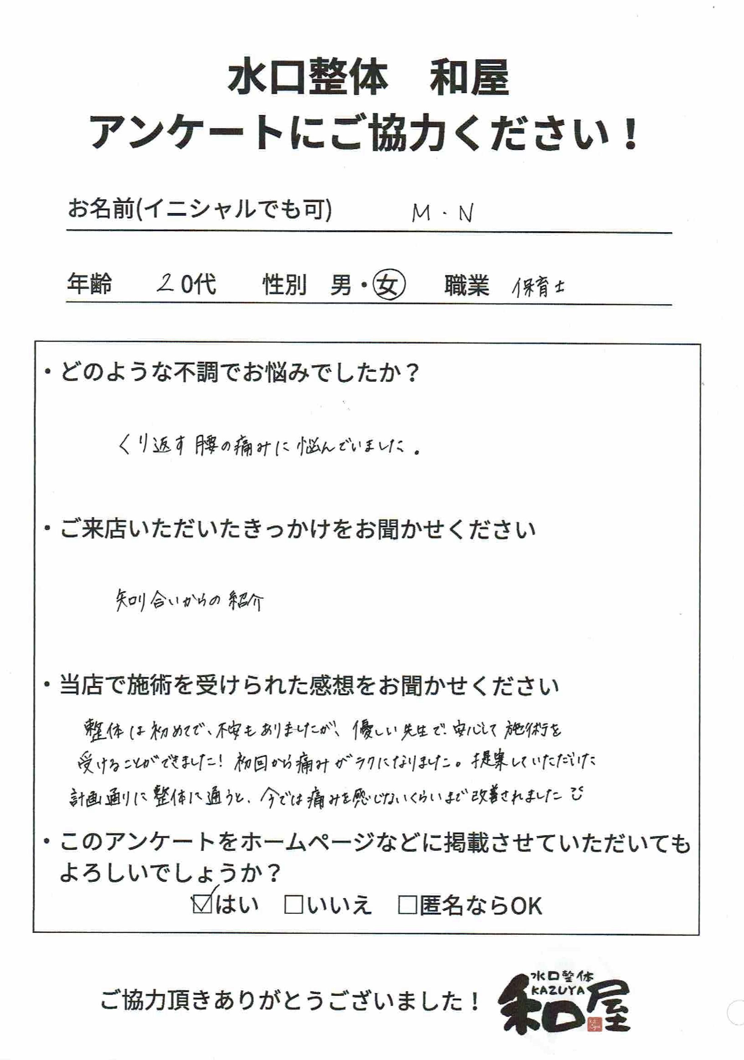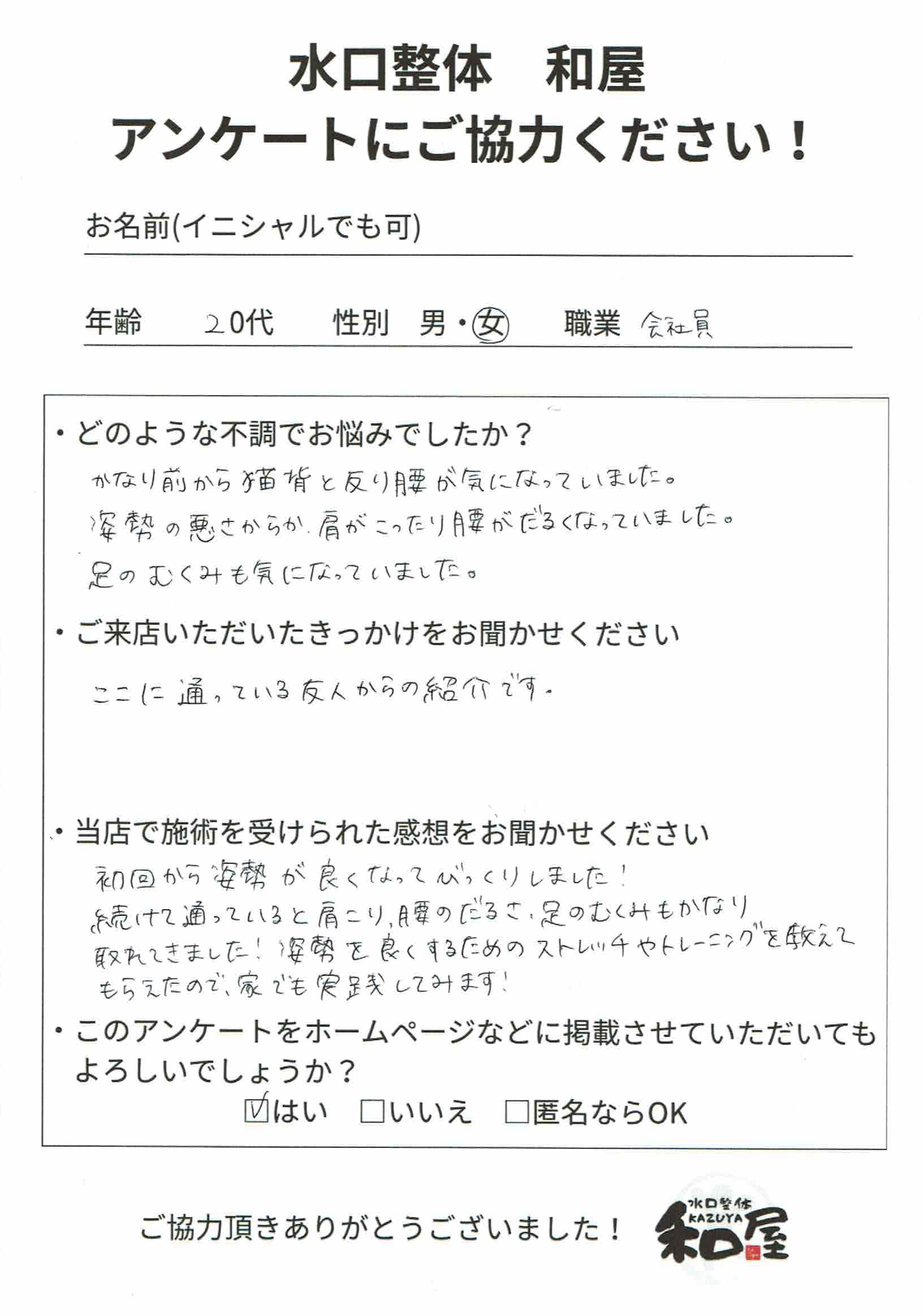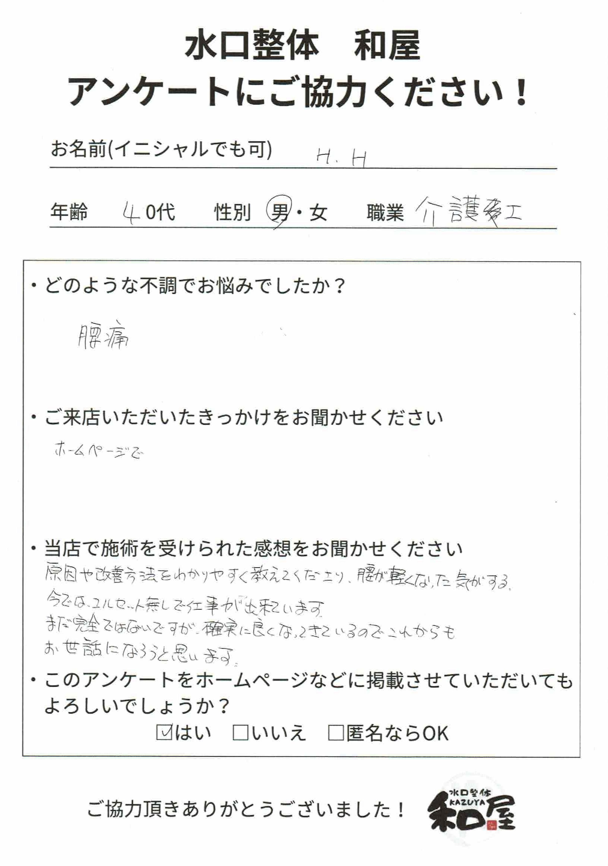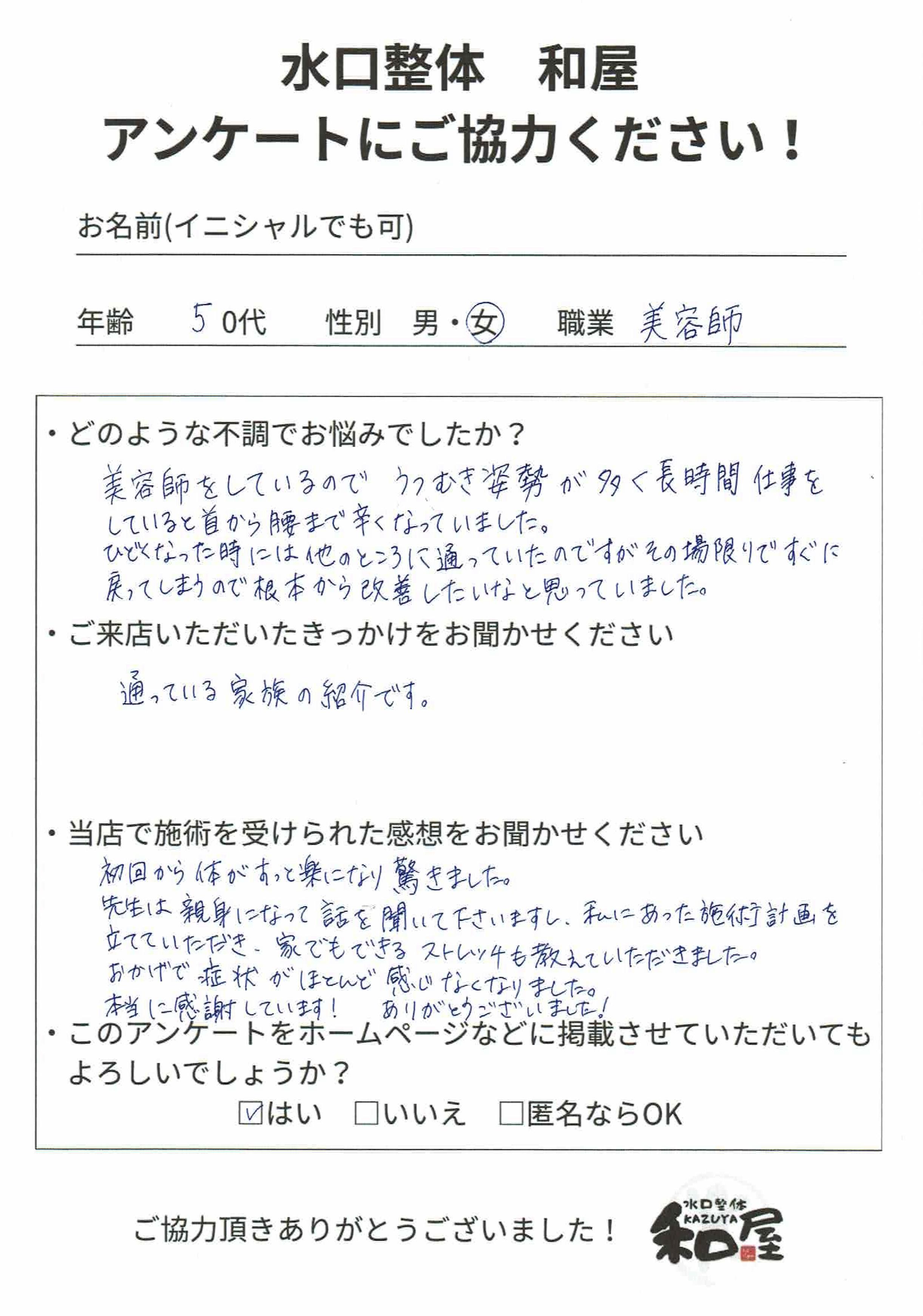 | 店舗名 | 水口整体 和屋 |